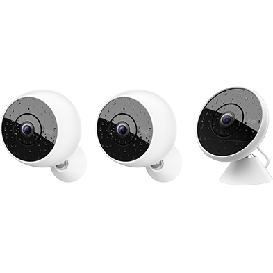 Ce kit Circle 2 comprend 2 caméras sans fil pour surveiller votre maison sans câble et 1 caméra filaire pour une alimentation constante, que la caméra soit placée à l'intérieur ou à l'extérieur.