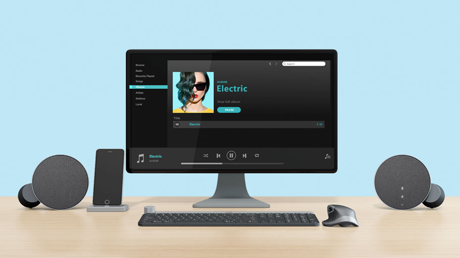 Ces haut-parleurs élégants comprennent des anneaux décoratifs argentés, des commandes rétroéclairées activées par le mouvement et des caches en tissu de qualité supérieure. Conçus pour compléter d'autres accessoires de bureau premium Logitech tels que Craft et MX Master 2S.